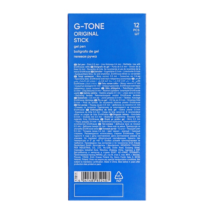 Классическая гелевая ручка Stick с металлизированным наконечником, стандартным типом пишущего узла и заменяемым стержнем. Ручка имеет полупрозрачный круглый корпус насыщенных цветов с удобной трехгранной профилированной грип-зоной. Цвет корпуса и колпачка соответствует цвету чернил. 5-канальный пишущий узел с диаметром шарика 0.5 мм в сочетании с быстросохнущими гелевыми чернилами обеспечивает точное и быстрое письмо без усилий. Длина непрерывной линии составляет 500 м при толщине 0.4 мм, что является высоким показателем в своей категории.