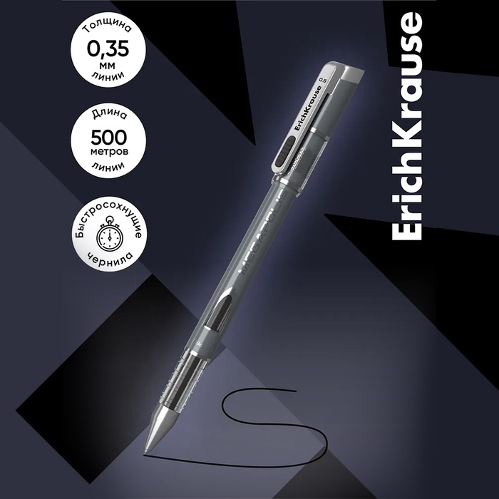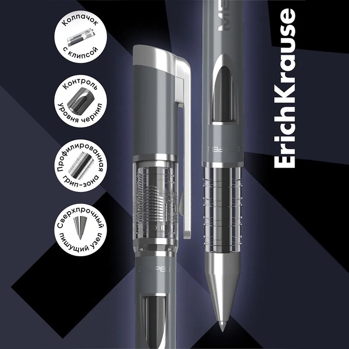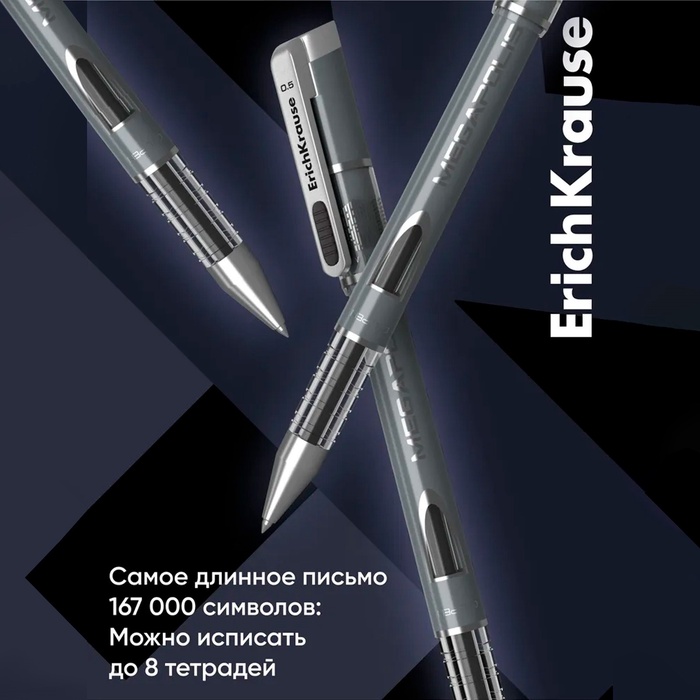 • Ручка гелевая ErichKrause Megapolis Gel, чернила чёрные, узел 0.5 мм, длина линии письма 500 метров — Характеристики