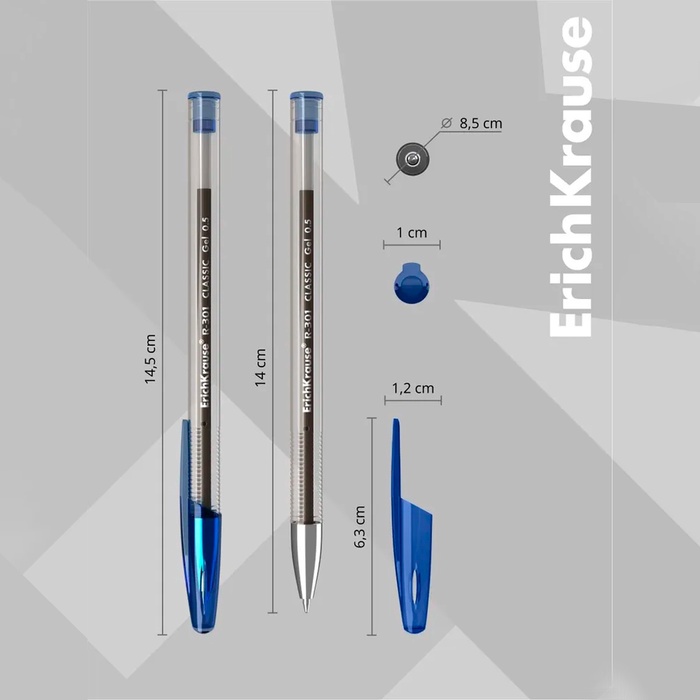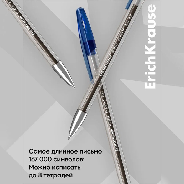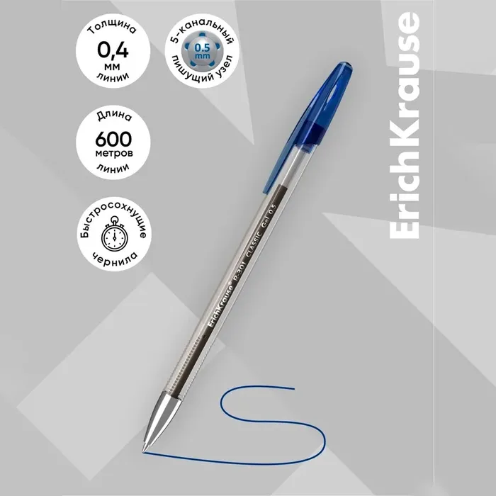 Ручка гелевая ErichKrause R-301 Classic Gel Stick, узел 0.5 мм, чернила синие, длина линии письма 600 метров — Характеристики