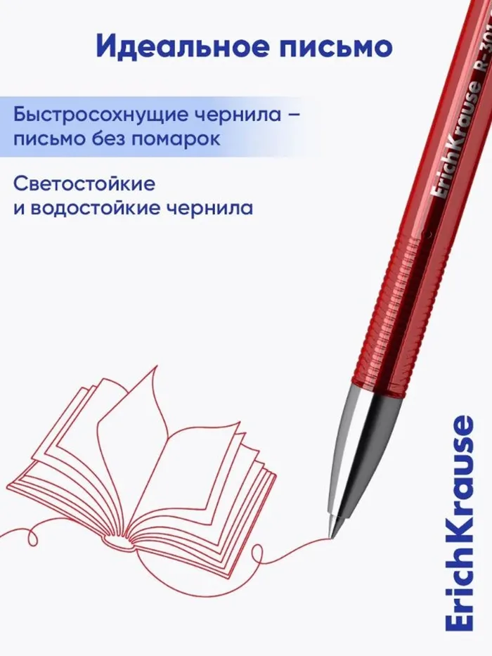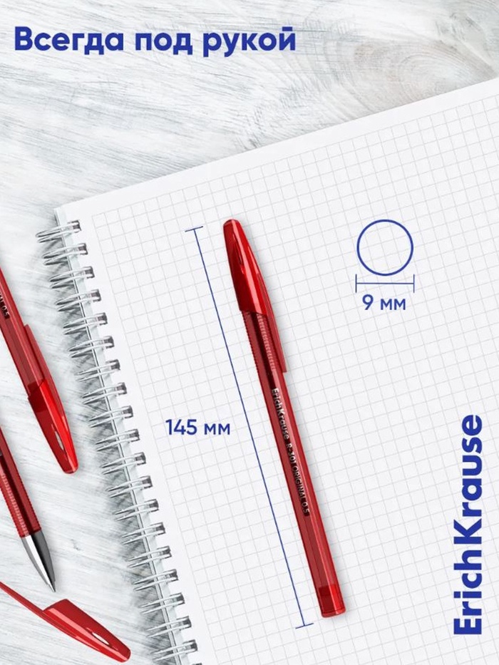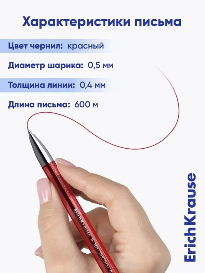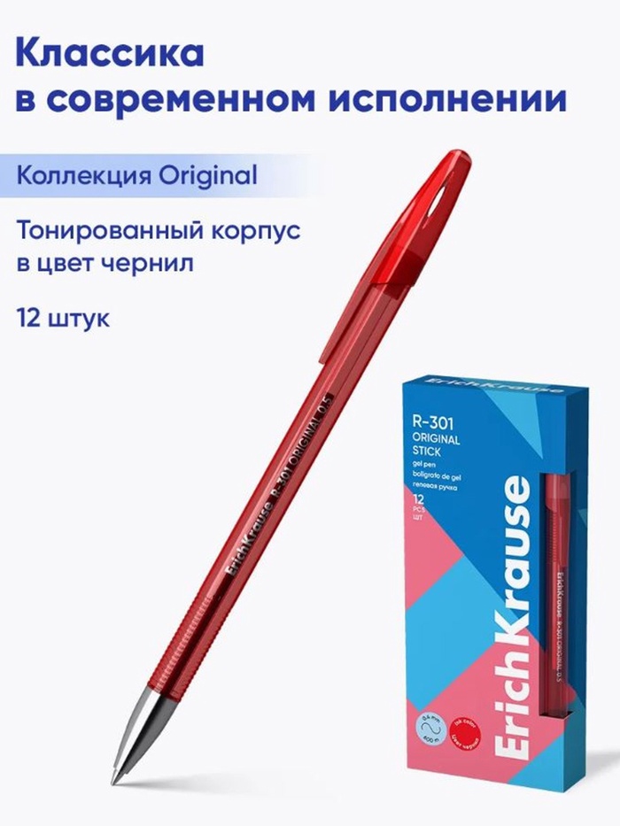 Ручка гелевая ErichKrause R-301 Original Gel, узел 0.5 мм, чернила красные, длина линии письма 600 метров — Характеристики