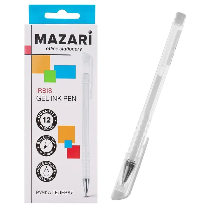 Ручка гелевая IRBIS, швейцарский пишущий узел 0.8 мм, чернила белые производства США, стержень 130 мм — Характеристики