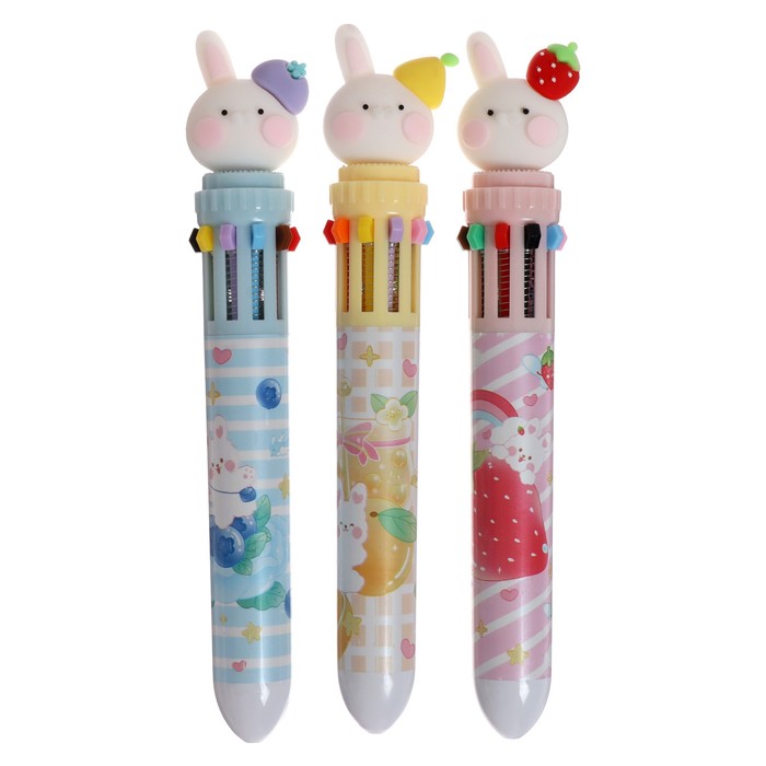 Ручка шариковая 10-цветная 0.5 мм "Зайчик", МИКС (штрихкод на штуке)