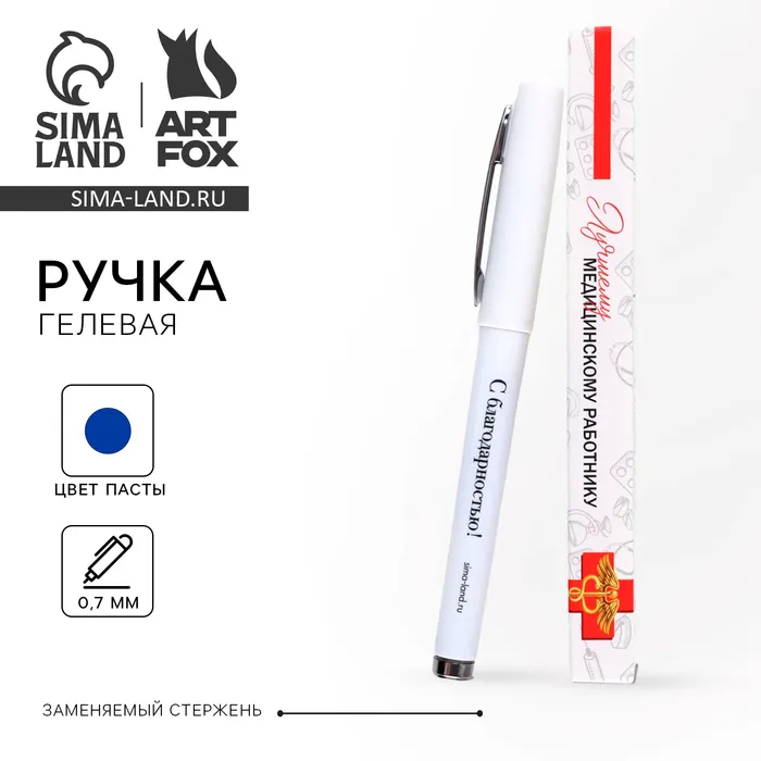 Ручка гелевая, с колпачком, пластик, синяя паста 0.7 мм «Лучшему медицинскому работнику» — Характеристики