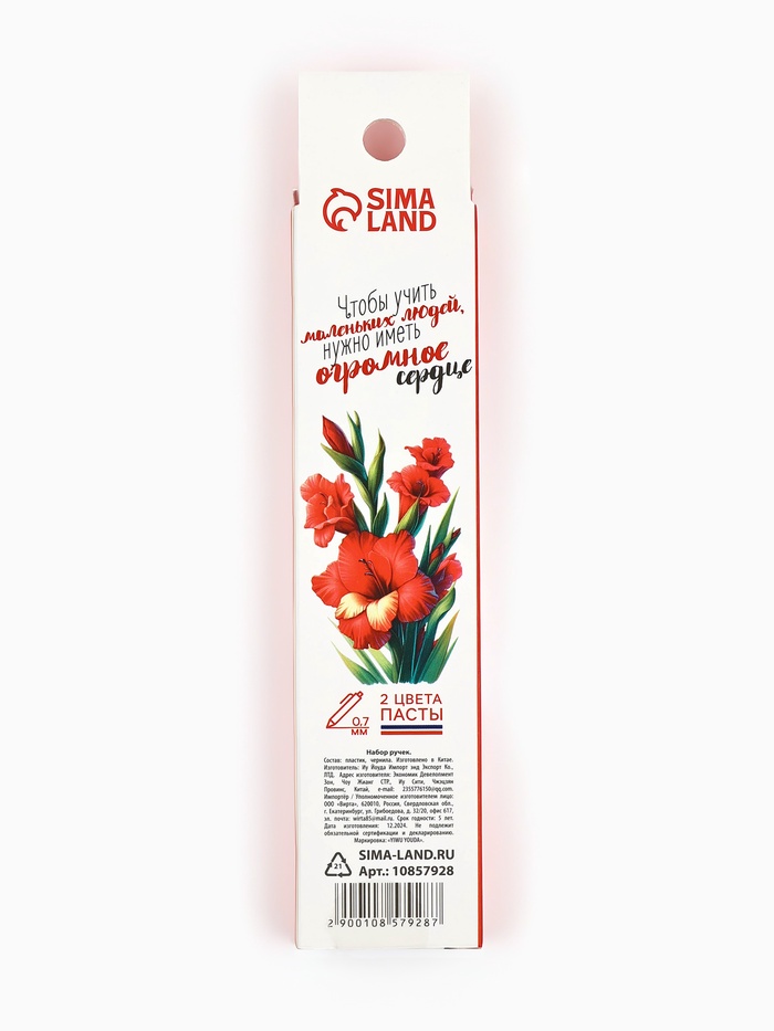 Ручка гелевая «Самый лучший учитель в мире», 2 шт., синяя и красная паста — Характеристики