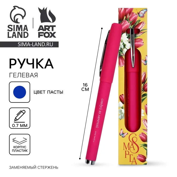 Ручка гелевая, синяя паста, 0.7 мм, пластик «С 8 марта» — Характеристики