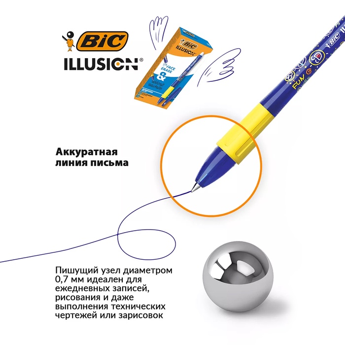 Ручка гелевая стираемая BIC Gelocity Illusion, узел 0.7 мм, чернила синие, цена за 1 шт. — Характеристики