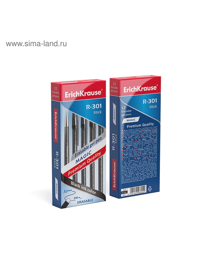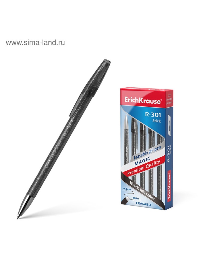 Ручка гелевая стираемая ErichKrause R-301 Magic Gel, узел 0.5 мм, чернила чёрные, длина письма 200 м, цена за 1 шт. — Характеристики