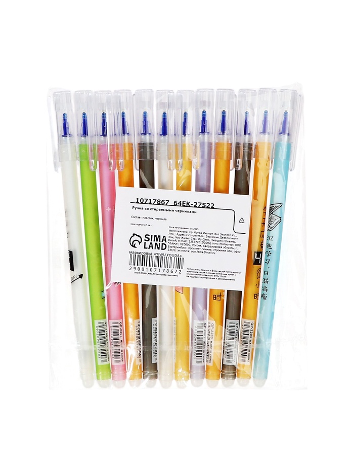 Ручка гелевая стираемые чернила, 0.5 мм, стержень синий, ассорти, МИКС — Характеристики