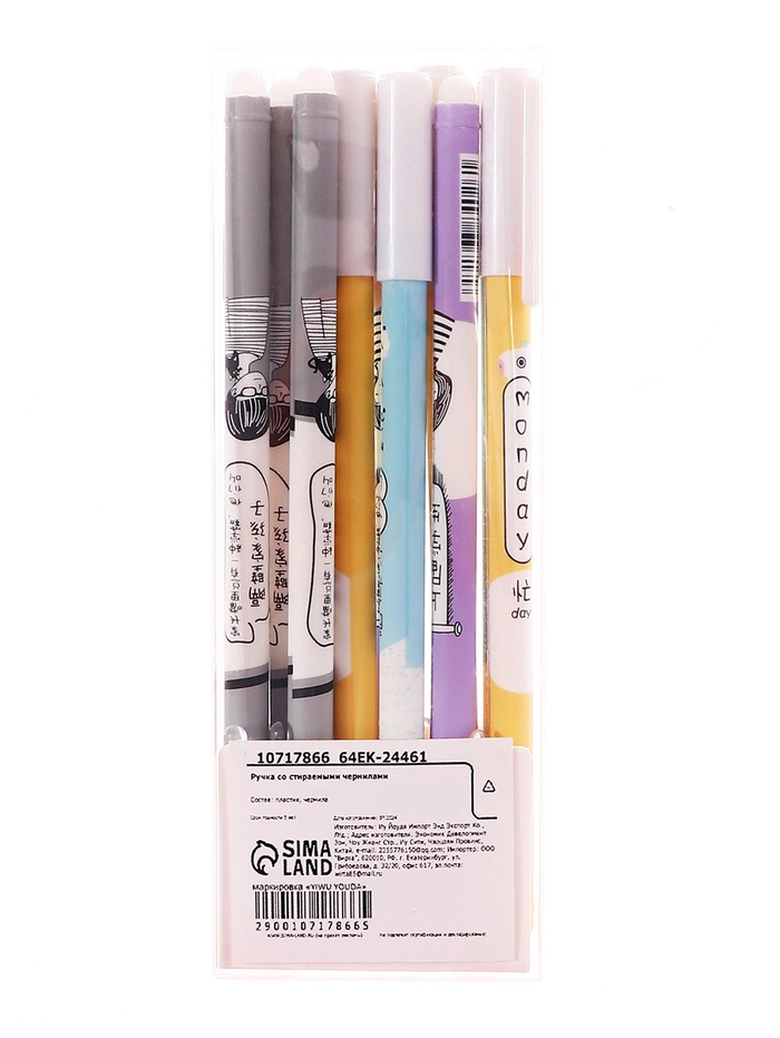 Ручка гелевая СТИРАЕМЫЕ ЧЕРНИЛА, 0,5 мм, стержень синий, Девочка МИКС (штрихкод на штуке) — Характеристики