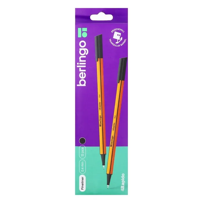 Капиллярная ручка Berlingo Rapido обеспечивает особо легкое, мягкое и точное письмо, идеально подходит для рисования и черчения. Благодаря эргономичному трёхгранному корпусу максимально комфортна в использовании. Металлическое обжатие наконечника дает возможность работать с линейками и трафаретами. Высокое качество износостойкого пишущего наконечника и большой запас чернил значительно увеличивают срок службы ручки до 48 месяцев. Также, ручка долгое время не утрачивает пишущих свойств без колпачка. Чернила на водной основе. Цвет колпачка соответствует цвету чернил. Диаметр пишущего узла 0,4 мм обеспечивает мягкость письма и насыщенность цвета. Толщина линии письма составляет 0,4 мм, длина линии письма - 1000 метров. Цвет чернил: чёрный, Толщина линии письма: 0,4 мм, Длина письма: 1000 м, Цвет корпуса: оранжевый.