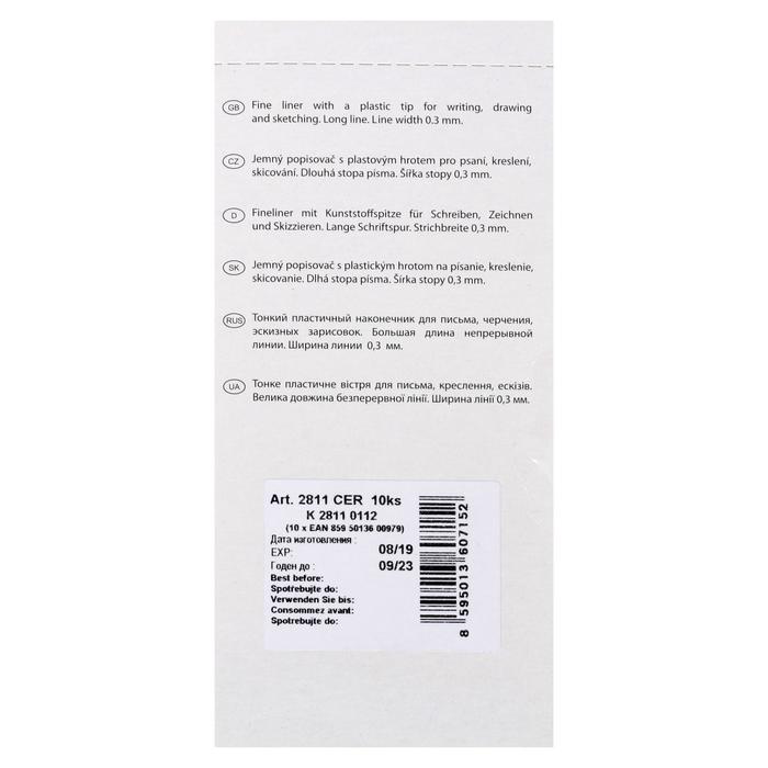 Ручка капиллярная Centropen 2811 0.8 мм, цвет чёрный, длина письма 1500 м, картонная упаковка — Характеристики