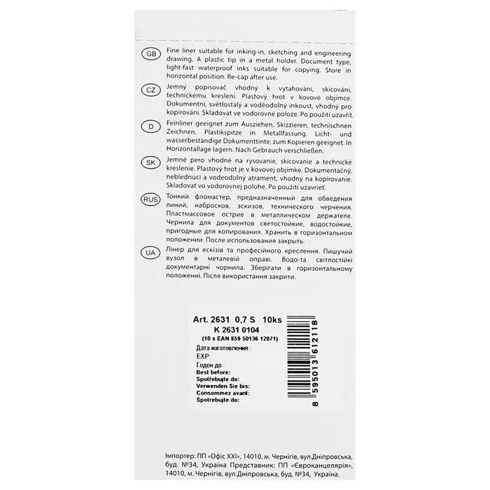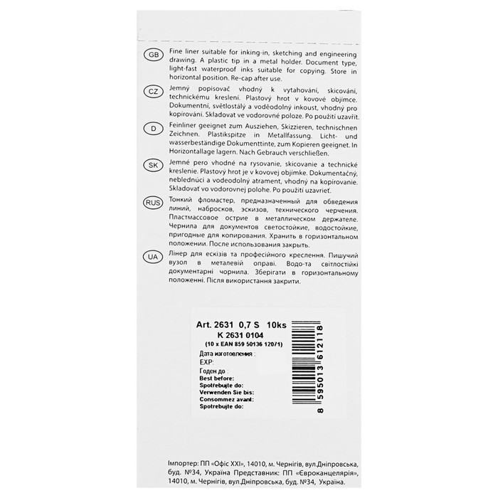 Ручка капиллярная для черчения Centropen 2631 линия 0.7 мм, цвет чёрный, длина письма 500 м — Характеристики