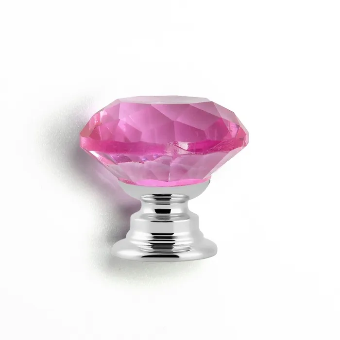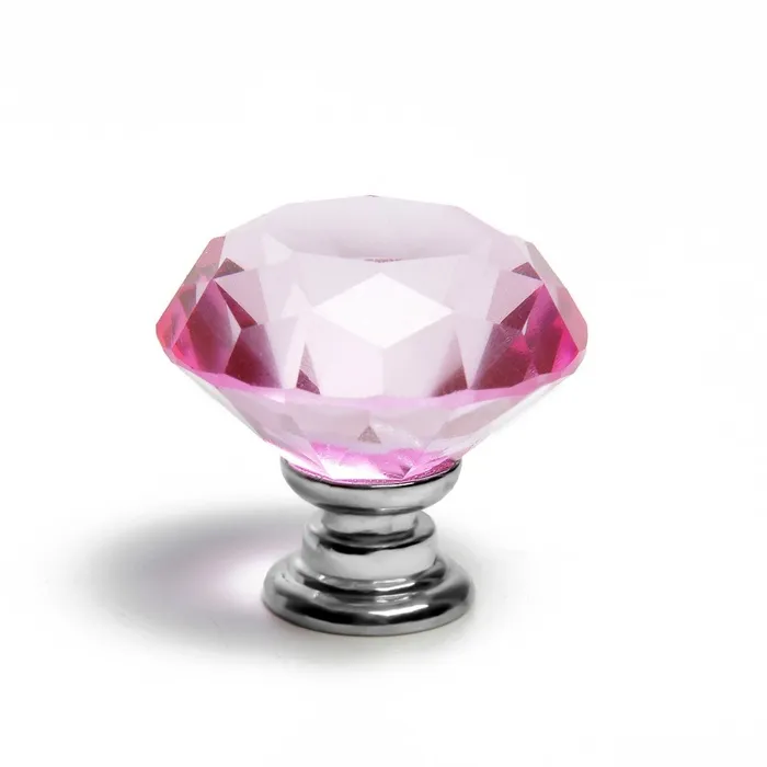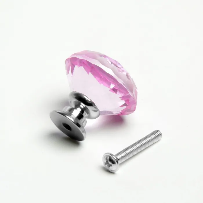 Ручка-кнопка CAPPIO "Алмаз", цвет розовый, стеклянная, d=30 мм, 8 шт.