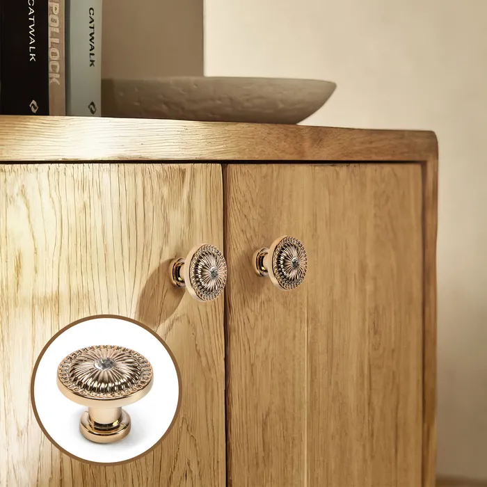 Интересный дизайн ручки сочетается с различными типами мебельного гарнитура. Фурнитура имеет привлекательный внешний вид и компактный размер. Золотой оттенок идеально подходит к мебельным фасадам в различной цветовой гамме.