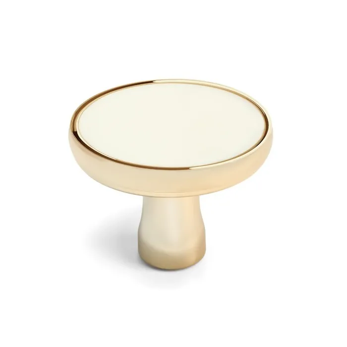 Интересный дизайн ручки сочетается с различными типами мебельного гарнитура. Фурнитура имеет привлекательный внешний вид и компактный размер. Золотой оттенок с белой вставкой идеально подходит к мебельным фасадам в различной цветовой гамме.