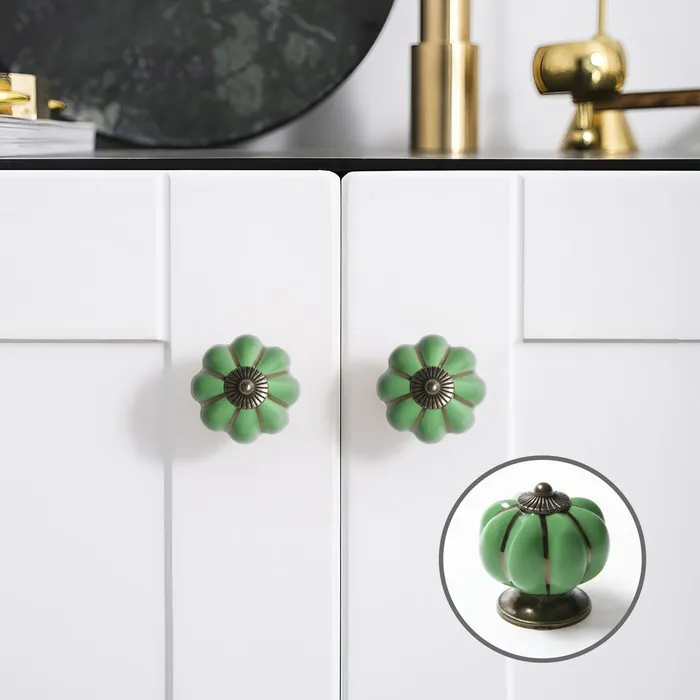 Фурнитура Ceramics устанавливается на фасад мебели для кухни, гостиной или спальни. Изделие имеет металлическое основание и керамическую вставку в форме цветка. Благодаря сочетанию глянца и искусственно состаренной поверхности ручка гармонично впишется в классический интерьер, а также подойдёт для комнаты в стиле прованс.