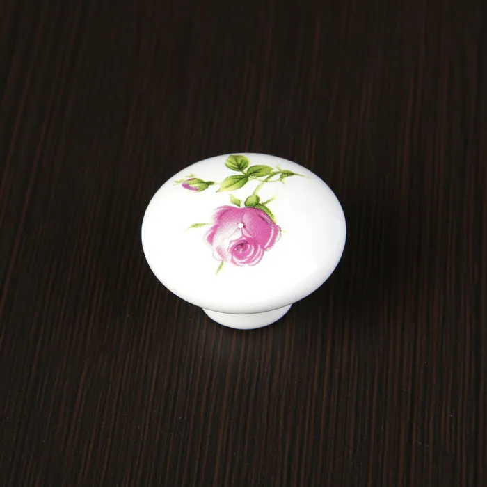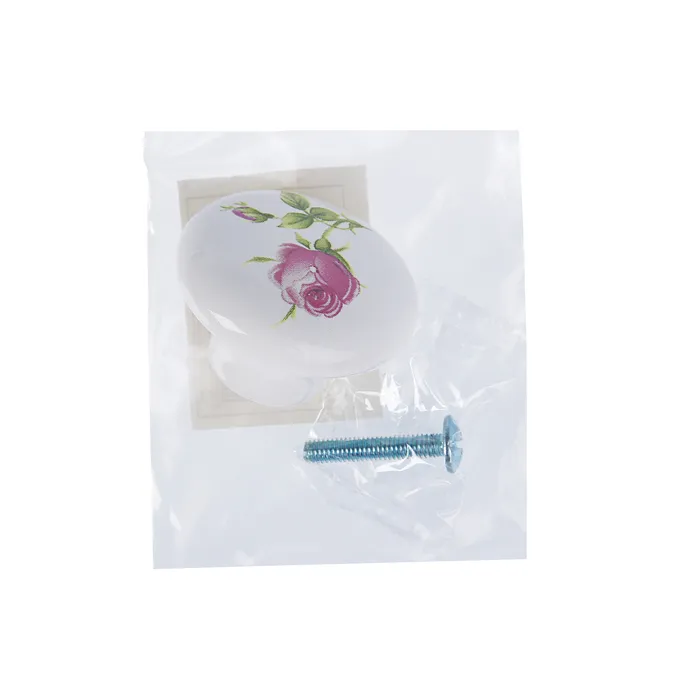 Ручка кнопка FLOWER Ceramics 004, d=38, керамическая, белая с рисунком — Характеристики