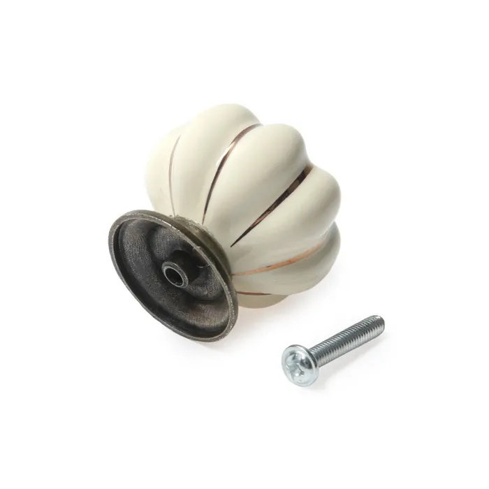 Фурнитура Ceramics устанавливается на фасад мебели для кухни, гостиной или спальни. Изделие имеет металлическое основание и керамическую вставку в форме цветка. Благодаря сочетанию глянца и искусственно состаренной поверхности ручка гармонично впишется в классический интерьер, а также подойдёт для комнаты в стиле прованс.