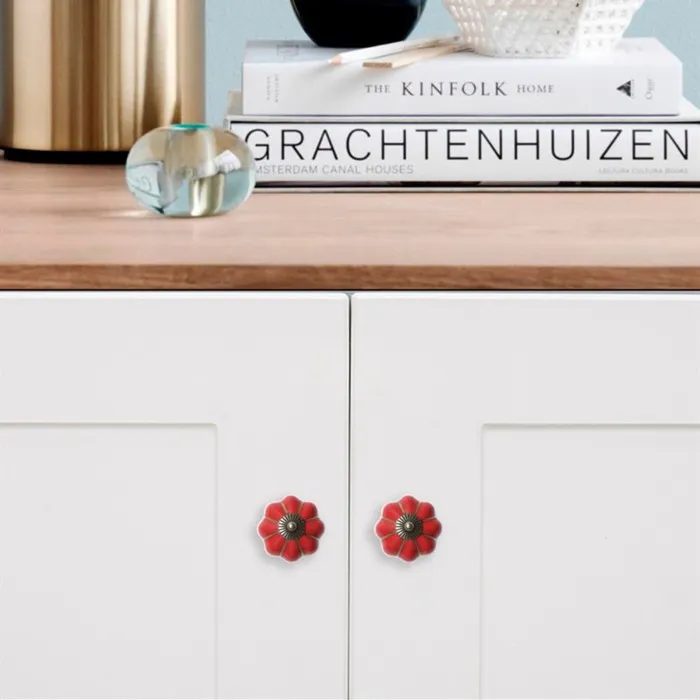 Фурнитура Ceramics устанавливается на фасад мебели для кухни, гостиной или спальни. Изделие имеет металлическое основание и керамическую вставку в форме цветка. Благодаря сочетанию глянца и искусственно состаренной поверхности ручка гармонично впишется в классический интерьер, а также подойдёт для комнаты в стиле прованс.