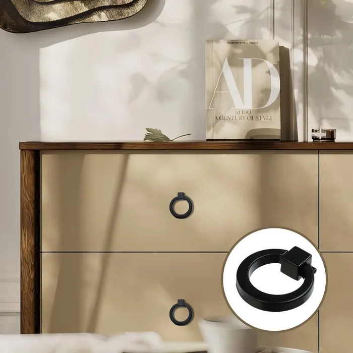 - Диаметр 33 мм: Компактный размер для аккуратного монтажа на дверцах и ящиках.