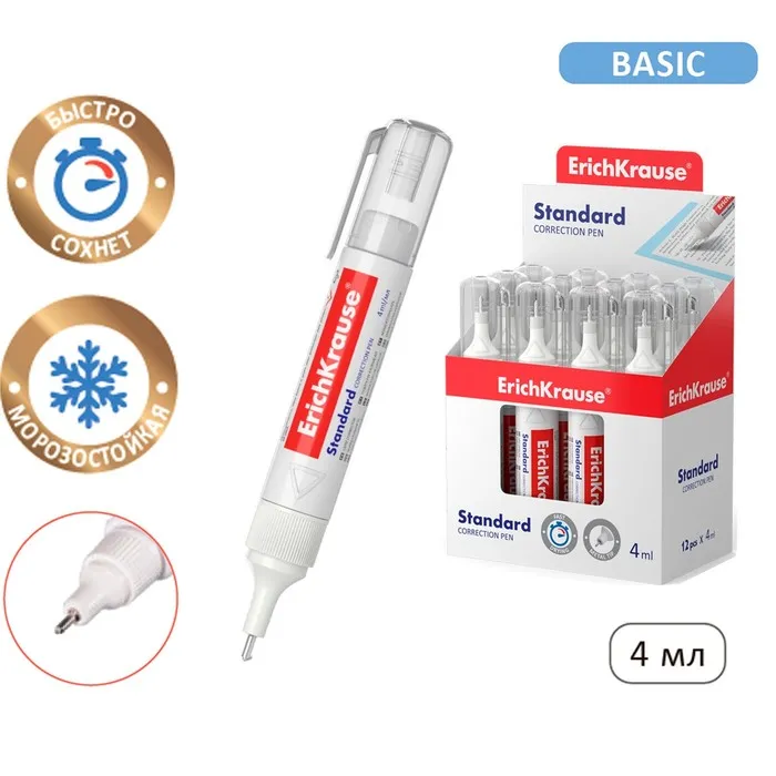 Ручка-корректор 4 мл, ErichKrause Standard, с металлическим наконечником — Характеристики
