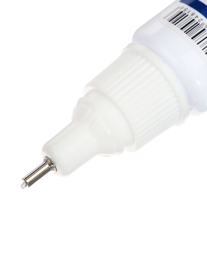 Ручка-корректор с быстросохнущей корректирующей жидкостью для точечных исправлений.