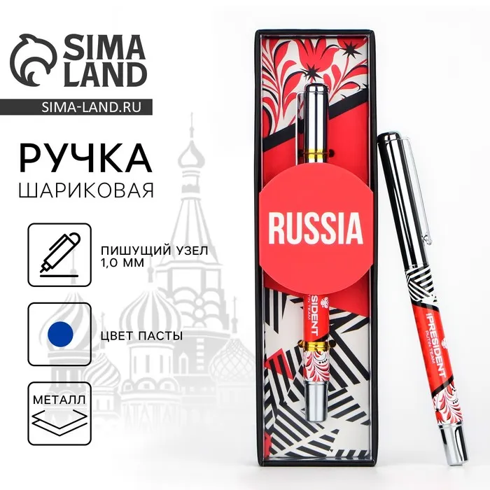 Ручка металл с колпачком «Russia», фурнитура серебро, 1.0 мм — Характеристики