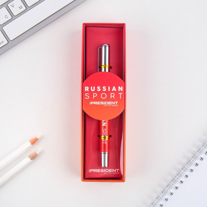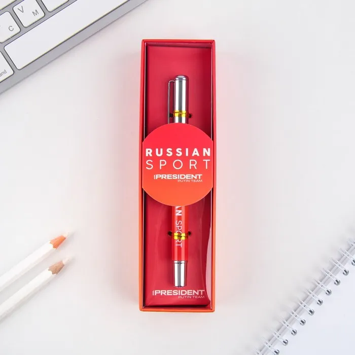Ручка металл с колпачком «Russian sport», фурнитура серебро, 1.0 мм