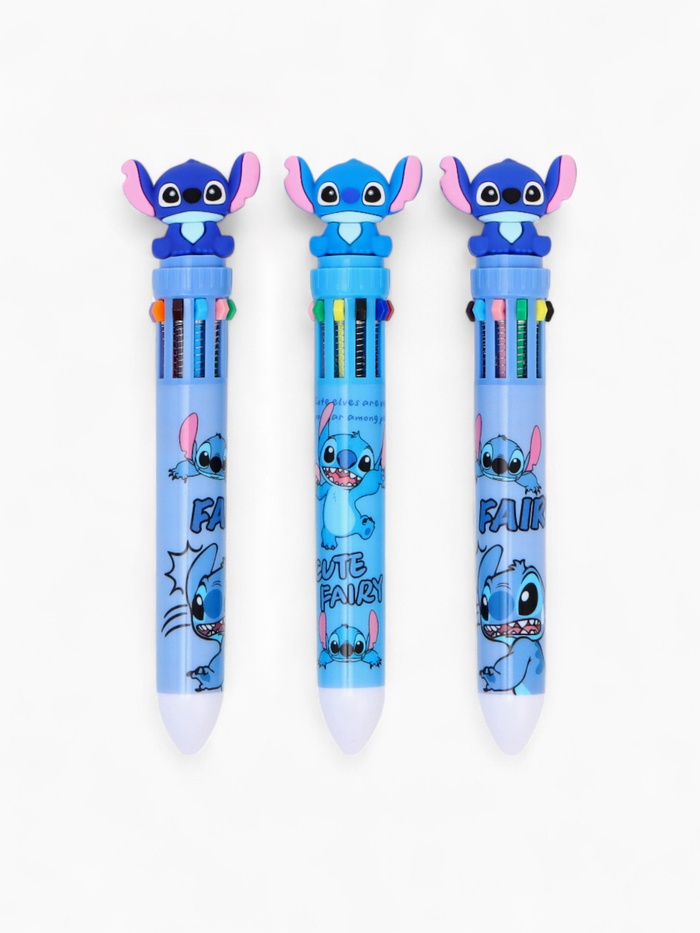 Многоцветная ручка с 10 цветами, в голубом корпусе, с фигуркой Стича— яркий и удобный аксессуар для творчества и учёбы. Одно нажатие — смена цвета: идеально подходит для заметок, раскрашивания, выделения текста. Качественная паста, гладкое письмо. Фигурка Стича сверху добавляет очарования. Идеальна для ребенка— поклонника Disney. Практично, красочно и по-настоящему мило — пусть каждый день будет ярче!