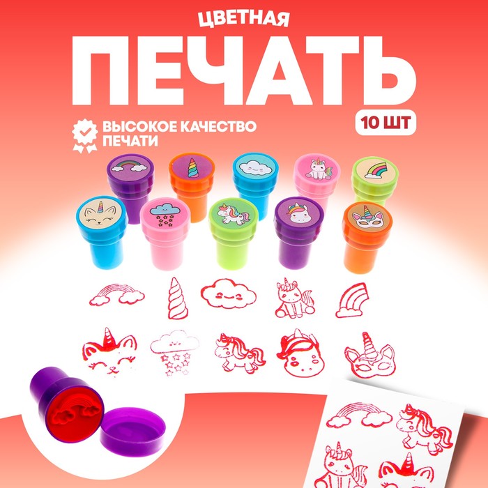 Печать цветная «Приключение единорога», набор 10 шт., МИКС