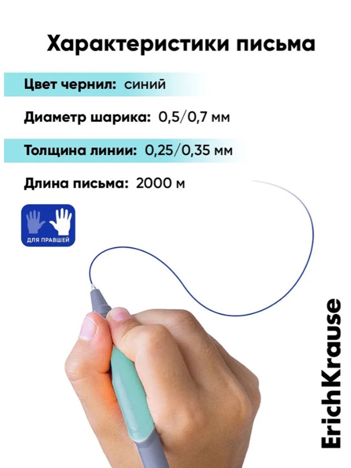 Ручка первоклассника шариковая, ErichKrause ErgoLine Stick&Grip Pastel, 0.5 мм, синяя — Характеристики