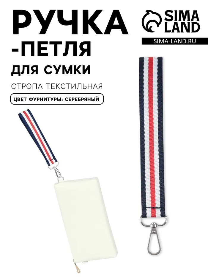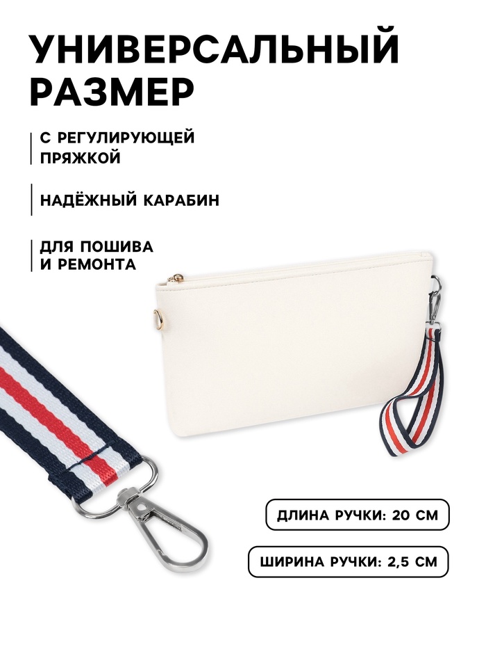 Ручка-петля для сумки, стропа, 20×2.5 см, синяя, белая, красная — Характеристики