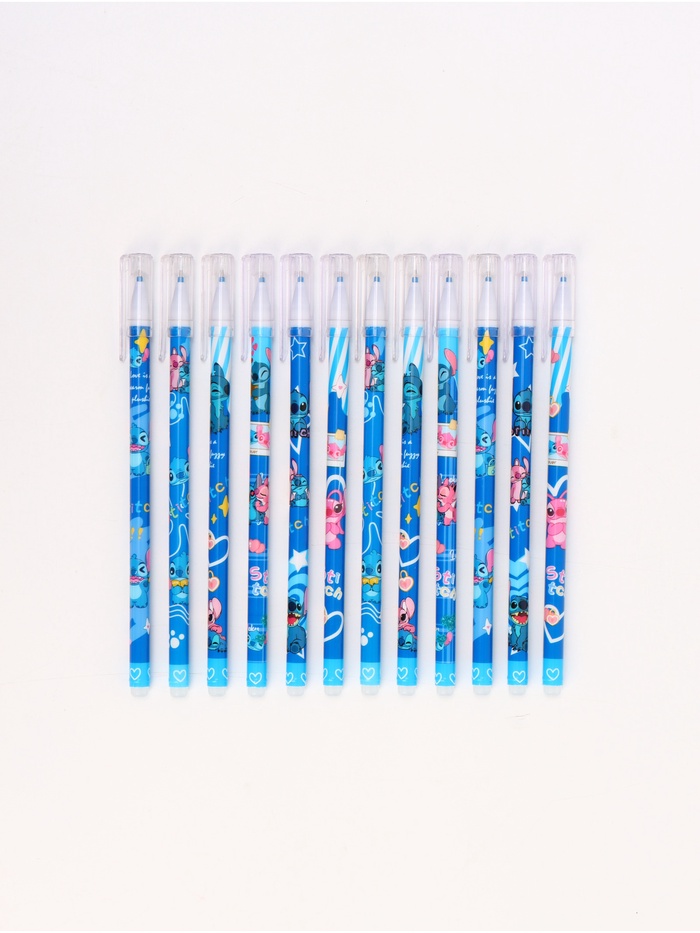 Ручка «пиши-стирай» с колпачком, синяя паста 0,5 мм, набор 12 штук, с принтом Стича — удобный и весёлый канцелярский аксессуар для школьников. Позволяет писать и стирать ластиком на конце — идеально для учёбы и заметок. Тонкий наконечник 0,5 мм, гладкое письмо. Яркие ручки с любимым инопланетянином поднимают настроение. Надёжные колпачки предотвращают высыхание. Идеальны для школы, творчества и подарков. Удобно, практично и по-настоящему классно!