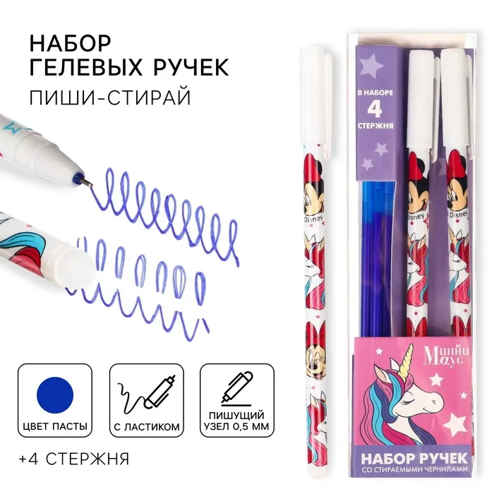 Ручка пиши стирай, 2 штуки, 4 стержня, «Минни Маус» — Характеристики
