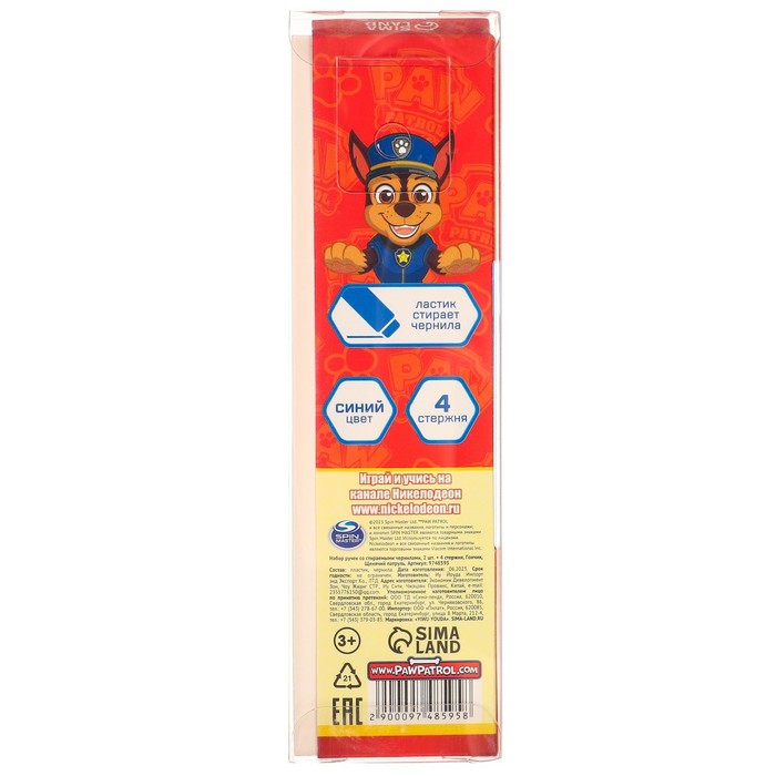 Ручка пиши стирай, 2 штуки, 4 стержня, «Щенячий патруль» — Характеристики