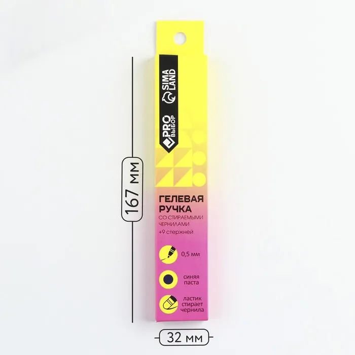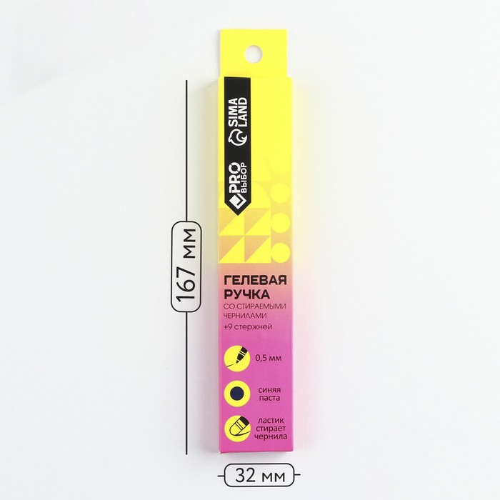 Ручка пиши-стирай, гелевая, 9 стержней, синяя паста, 0.5 мм «PROвыбор желтая» — Характеристики