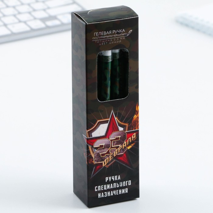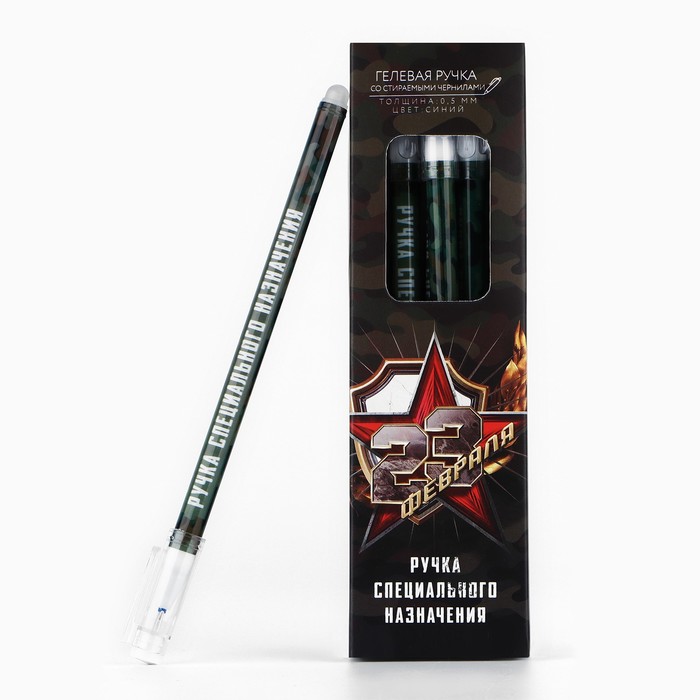 Ручка пиши стирай синяя паста 0.5 мм с колпачком «23 февраля» — Характеристики