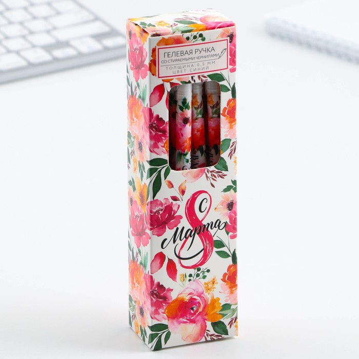 Ручка пиши-стирай, синяя паста, гелевая, 0.5 мм с колпачком «С 8 Марта» — Характеристики