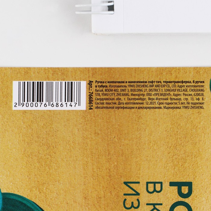Составляющие набора: Ручка