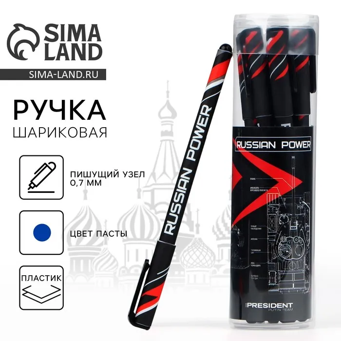Ручка пластик с колпачком шариковая «Russian power», синяя паста, 0.7 мм — Характеристики