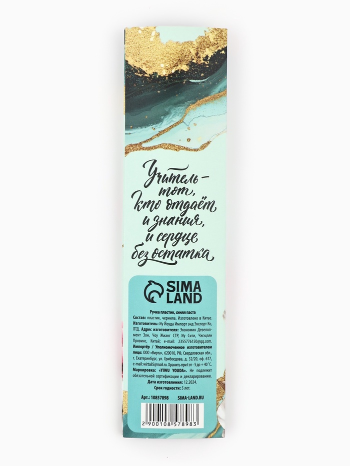 Ручка пластик в конверте «Любимому учителю», синяя паста 0.7 мм — Характеристики