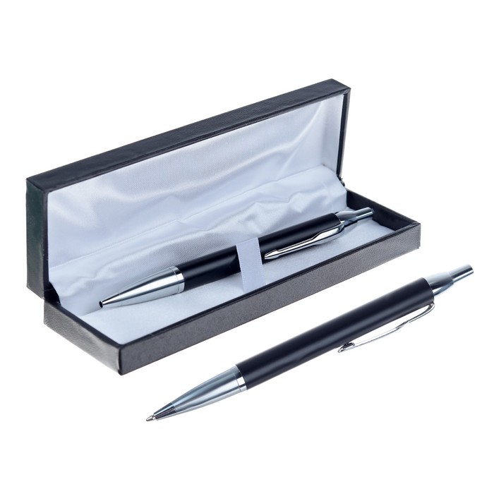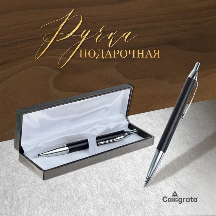 Ручка подарочная Calligrata «Модерн», шариковая, автоматическая, в футляре кожзам, корпус чёрный с серебристым — Характеристики