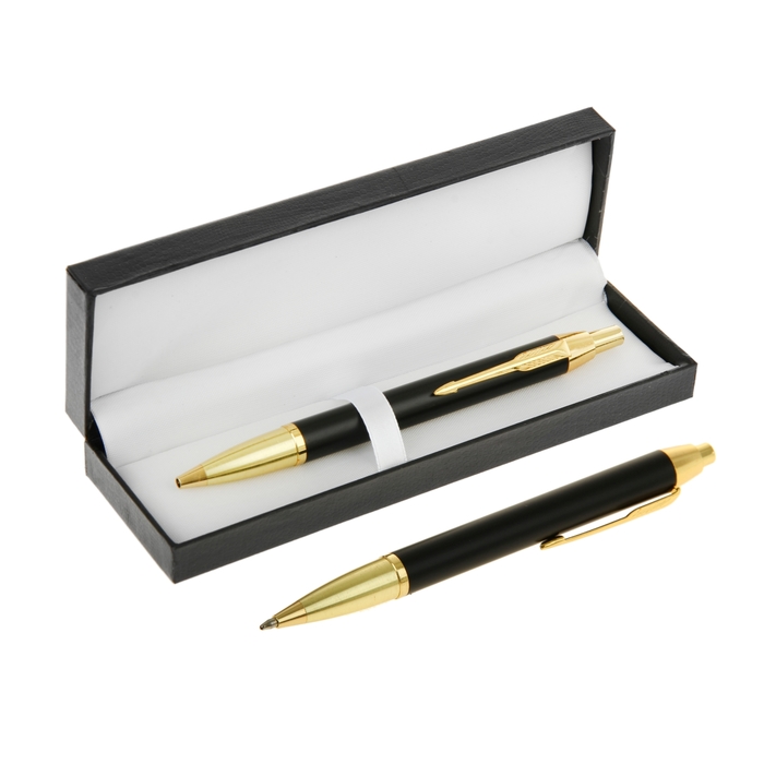 Ручка шариковая подарочная автоматическая в кожзам футляре "Модерн" черная с золотистыми вставками – продемонстрирует ваш безупречный вкус и подчеркнёт статус своего обладателя. Обтекаемый металлический корпус декорирован блестящими деталями, а футляр имитирует натуральную кожу.
