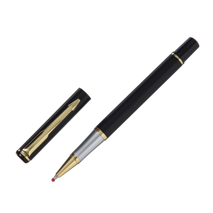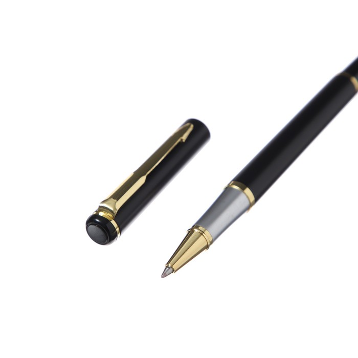 Ручка подарочная роллер, в кожзам футляре, корпус чёрный, золото, серебро — Характеристики