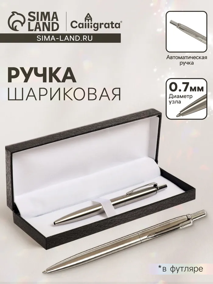 Ручка подарочная шариковая Calligrata, в кожзам футляре ПБ J, автоматическая, корпус серебристый — Характеристики