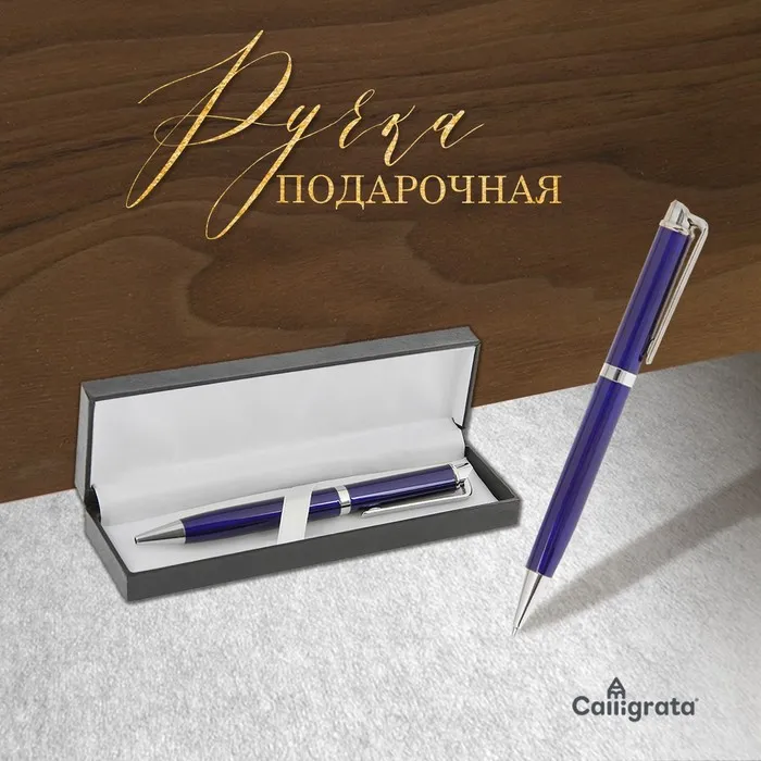 Ручка подарочная, шариковая «Эспрессо» в кожзам футляре, поворотная, синяя, с серебром — Характеристики