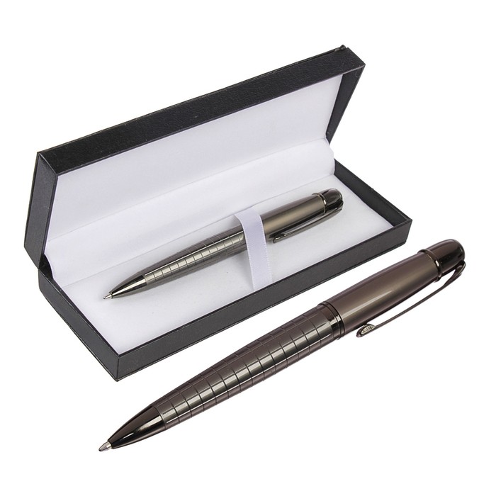 Шариковая подарочная ручка в футляре из кожзама – продемонстрирует ваш безупречный вкус и подчеркнёт статус своего обладателя. Обтекаемый металлический корпус декорирован блестящими деталями, а футляр имитирует натуральную кожу.