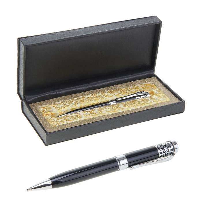 Ручка подарочная, шариковая «Гравюра» в кожзам футляре, чёрно-серебристая — Характеристики