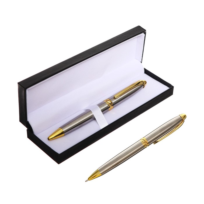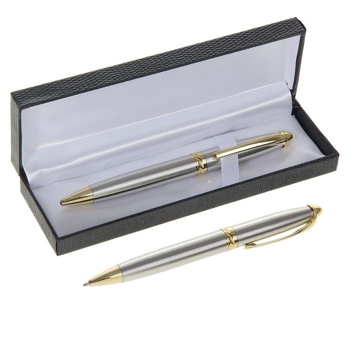 Шариковая подарочная ручка в футляре из кожзама – продемонстрирует ваш безупречный вкус и подчеркнёт статус своего обладателя. Обтекаемый металлический корпус декорирован блестящими деталями, а футляр имитирует натуральную кожу.
