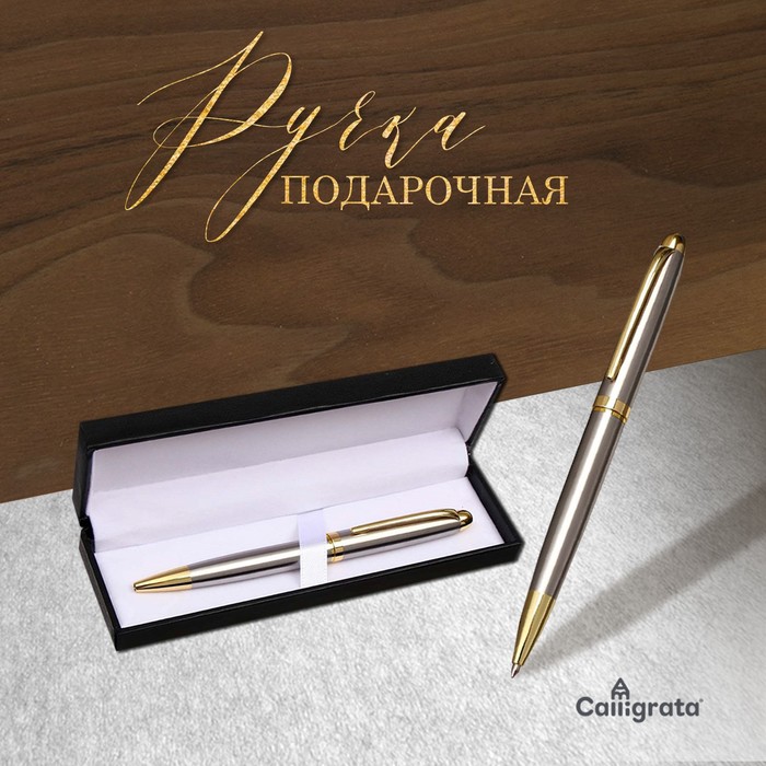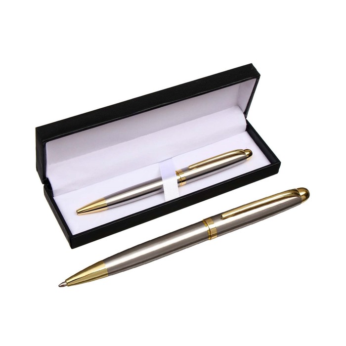 Ручка подарочная, шариковая «Классика» в кожзам футляре, поворотная, корпус серебро с золотым — Характеристики